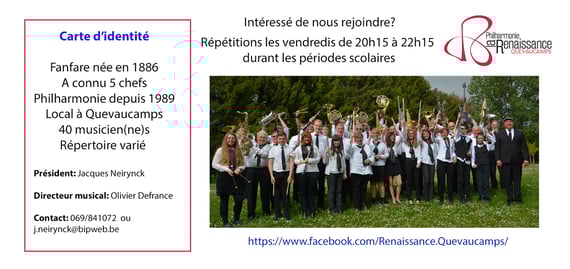 Harmonie de Basècles : répétition le jeudi à 20h, salle des fêtes de Basèces, direction : Mme Ducat
